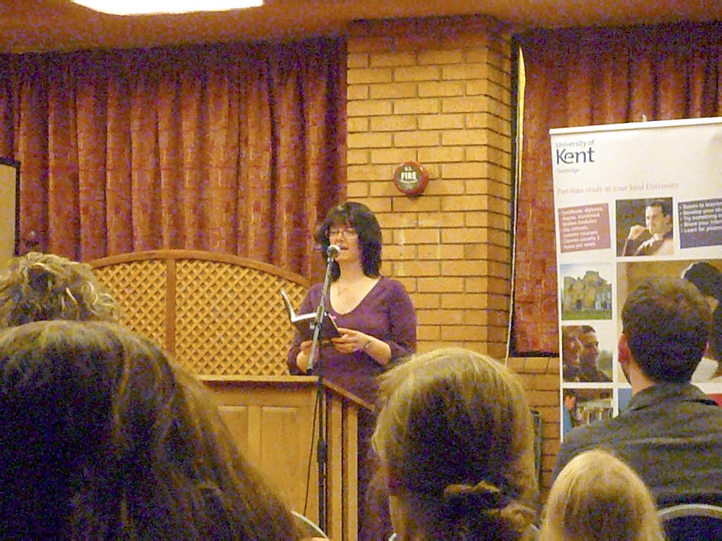 Reading at the Angel Centre, Tonbridge, March 2008 (top photo by John Trelawny)